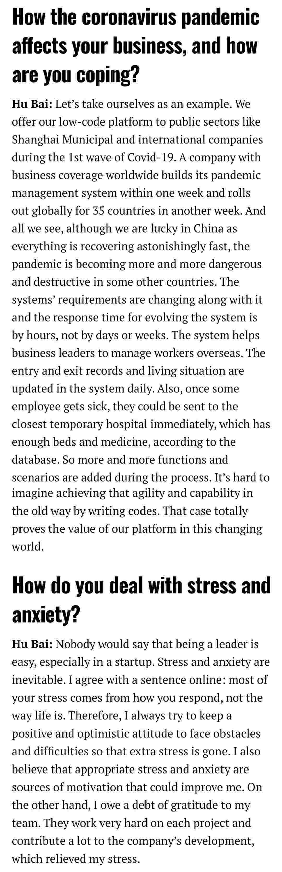 2021年年初,,,,,,,,爱湃斯科技CEO胡柏受邀接受法媒Startup.info的专访,,,,,,,与Startup info的读者分享了自己的创业经历、、、、、、、、、、、、、以及低代码平台OPPO钱包的创新之处。。。。。。